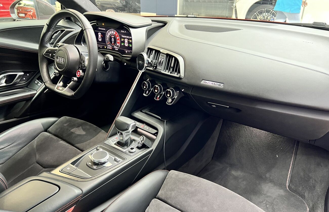 Audi R8 V10 Plus — es un coupé deportivo que combina un diseño agresivo, materiales de primera calidad y tecnología. Basado en el múltiple ganador de Le Mans, este vehículo une precisión ingenieril, pasión por la velocidad y elegancia alemana.
