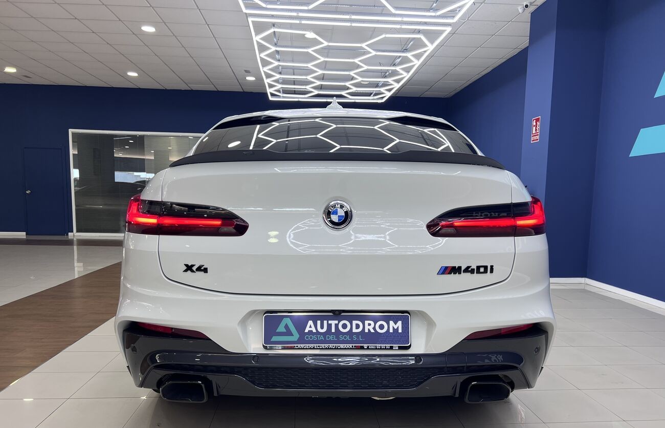 BMW X4 M40i — es la combinación de potencia y elegancia. El diseño exterior agresivo con el kit ///M original resalta el carácter deportivo, mientras que el interior premium con el selector de cambios de cristal, el techo panorámico y la iluminación ambiental Ambient Light crea una atmósfera de auténtico lujo.