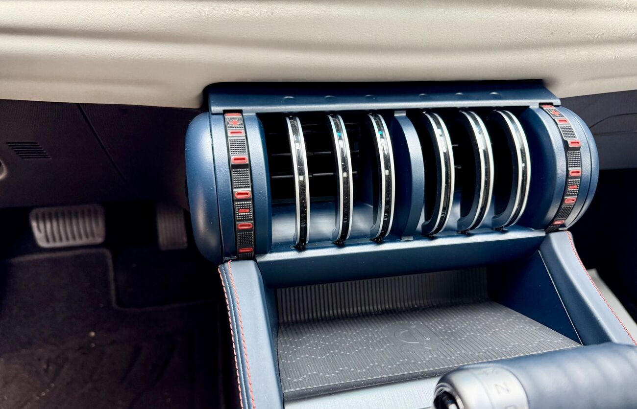 Selector futurista de marchas en forma de joystick.