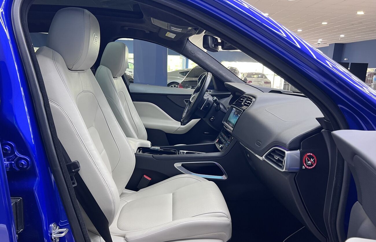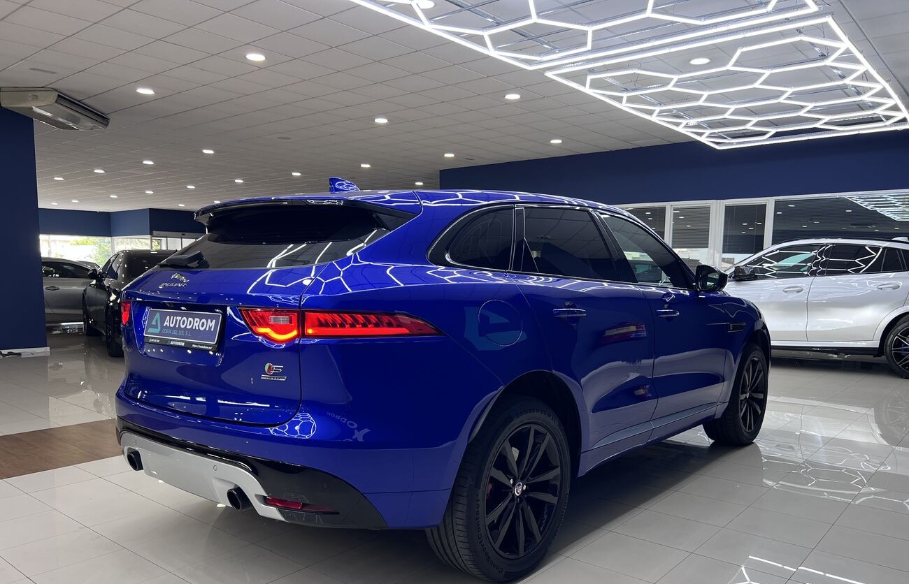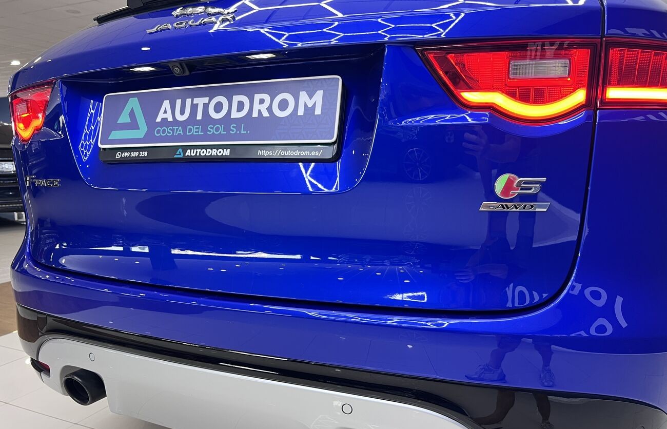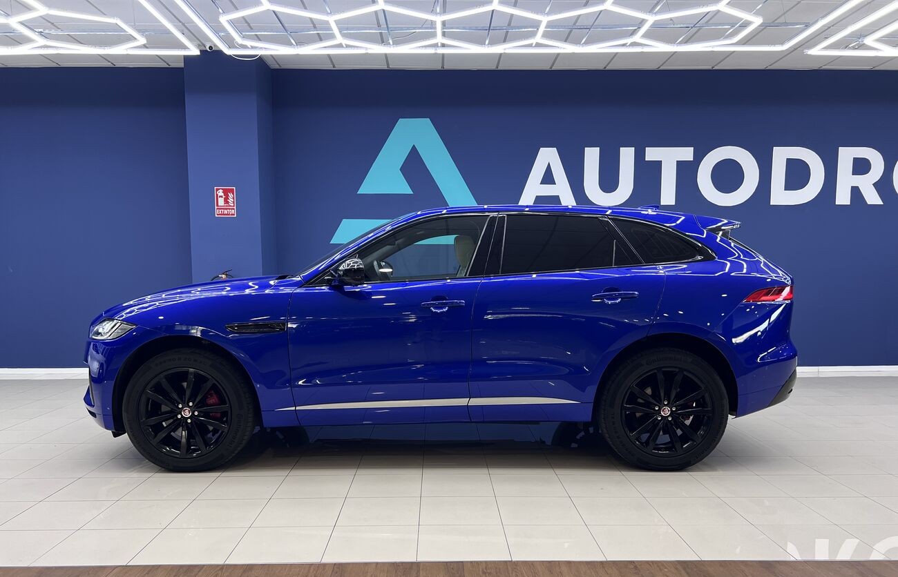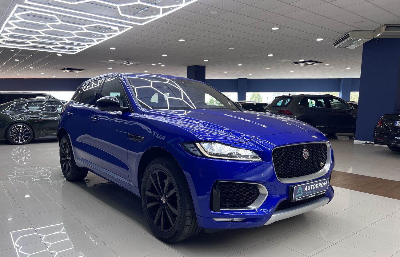 Jaguar F-PACE S es un SUV premium dinámico con un potente motor V6 y tracción total AWD. Equipado con faros LED adaptativos, asientos deportivos, sistema multimedia NGI y una gama de avanzadas asistencias al conductor. Ideal para una conducción cómoda y segura en cualquier condición.