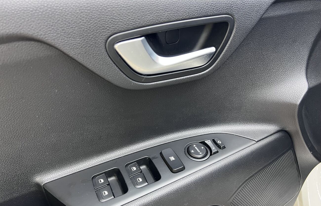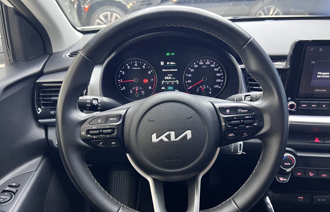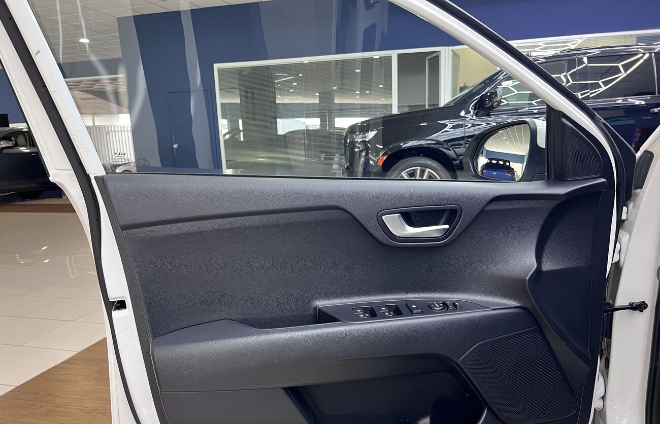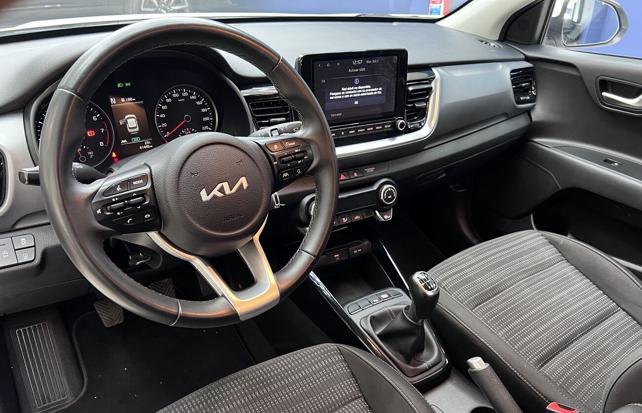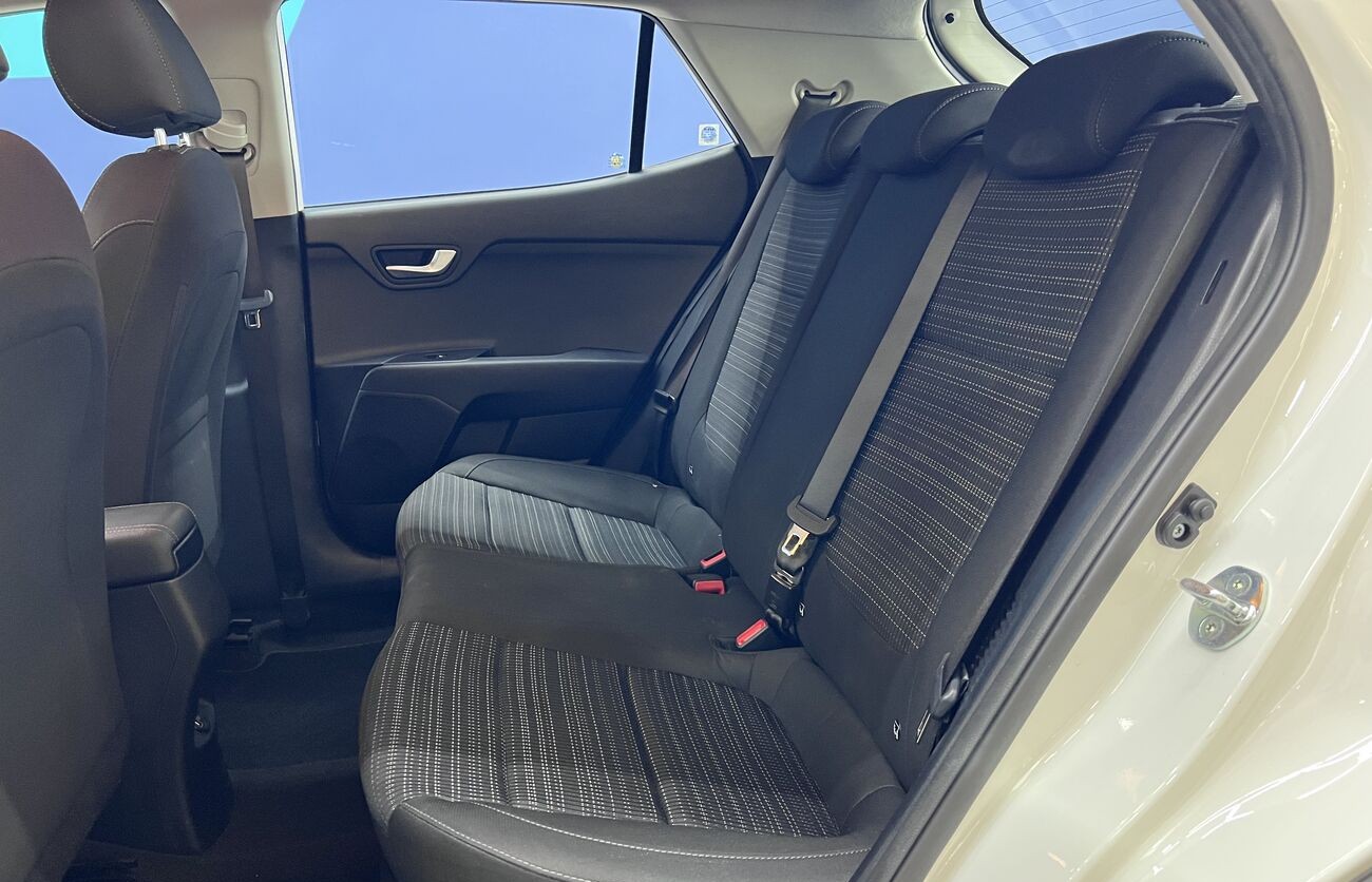 Kia Rio / Stonic – Un crossover/hatchback compacto y moderno para Europa, blanco, con motor de gasolina y caja manual. Económico, agradable en ciudad, cómodo para el uso diario. Tiene sistemas de seguridad modernos, asistentes, multimedia, cámara, climatización. Interior en tela, maletero práctico, buen conjunto de funciones básicas.