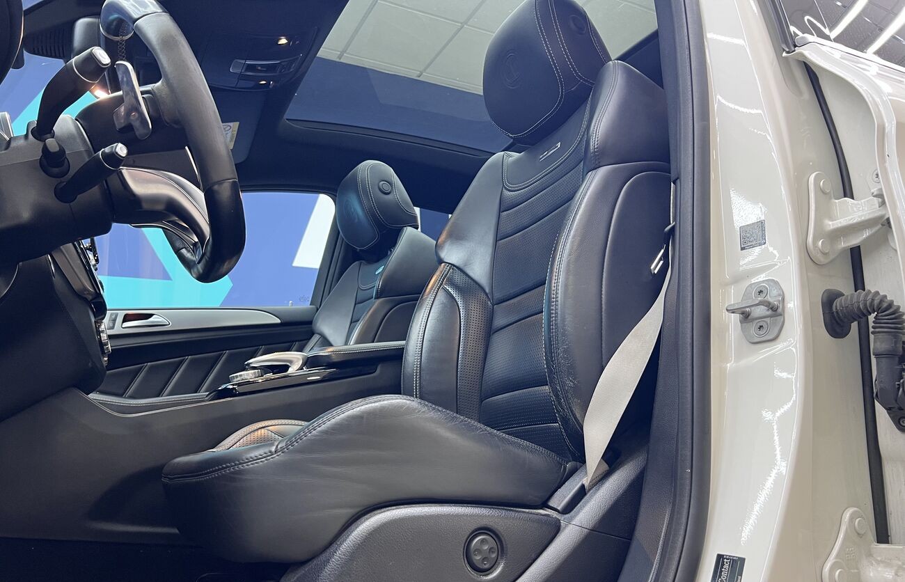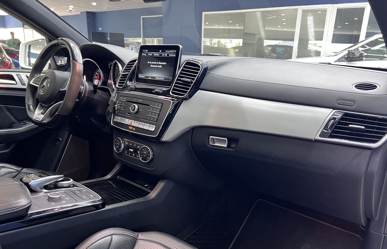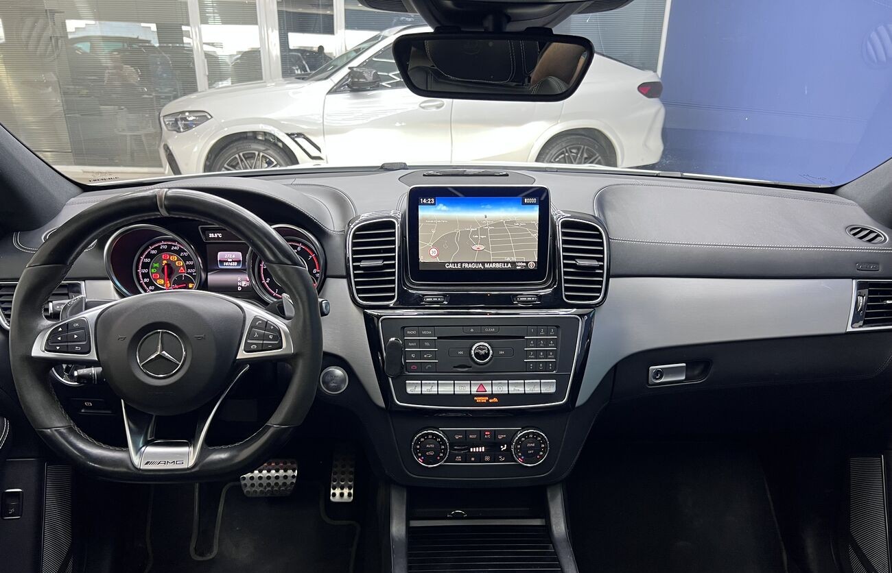 Mercedes-AMG GLE 63 S 4MATIC - un coupé de lujo con un potente motor V8 y suspensión neumática AIRMATIC ofrece un confort y una dinámica excepcionales. El vehículo está equipado con un sistema de sonido prémium, techo panorámico, sistema de acceso sin llave y asistentes de conducción modernos. El acabado interior de alta calidad en cuero napa resalta el estatus y la atención al detalle.