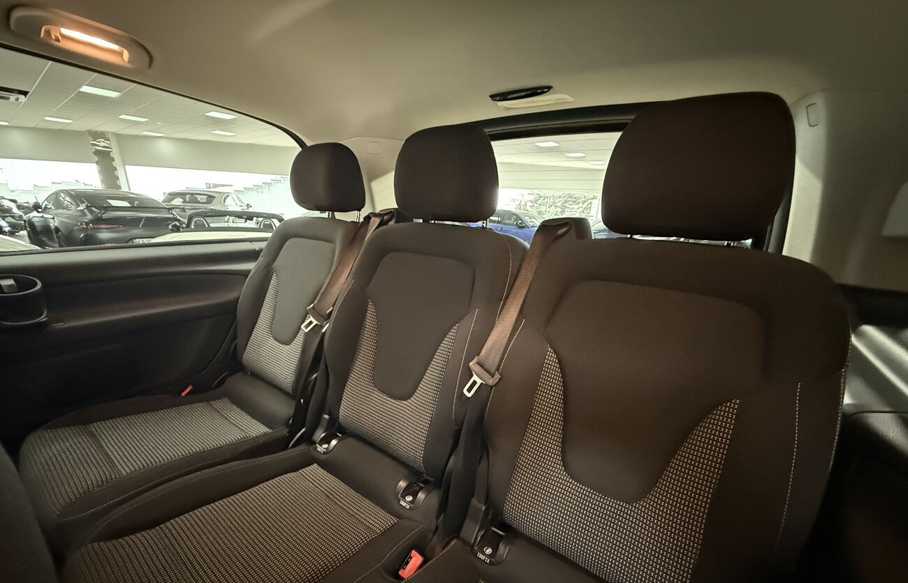 El Mercedes-Benz V 250 d de 7 plazas es un monovolumen premium que combina confort de clase ejecutiva con una gran funcionalidad. Equipado con un motor diésel de 190 CV y transmisión automática 9G-TRONIC, ofrece una conducción suave, eficiente y fiable. Destaca por su amplio interior modular, alto nivel de calidad en los acabados y avanzados sistemas de asistencia a la conducción, siendo ideal tanto para uso empresarial como familiar o viajes de larga distancia.
