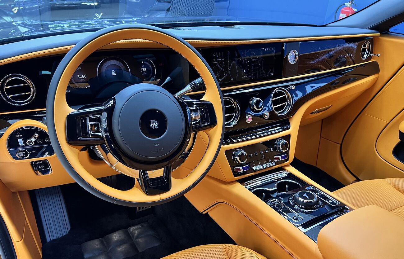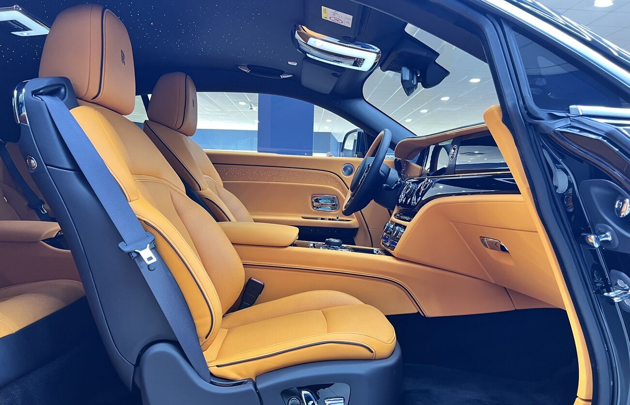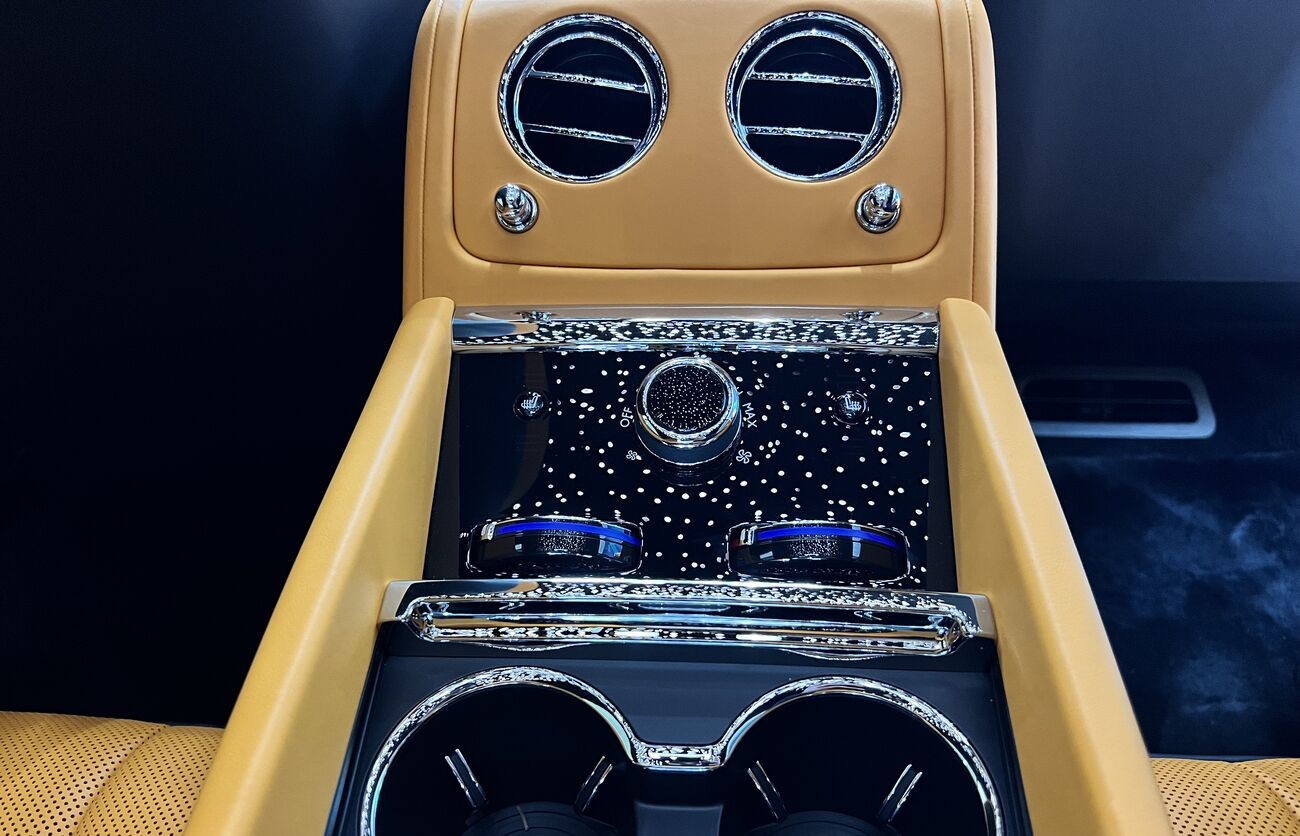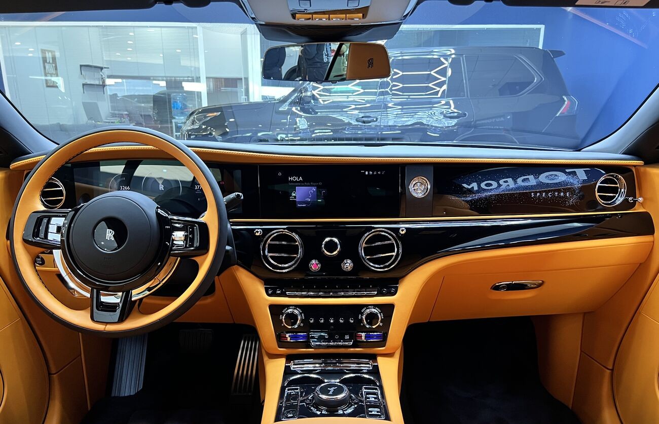 El interior conserva los elementos distintivos de Rolls-Royce: un techo estrellado, materiales de acabado de alta calidad y sistemas multimedia de última generación.