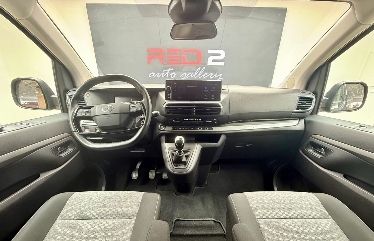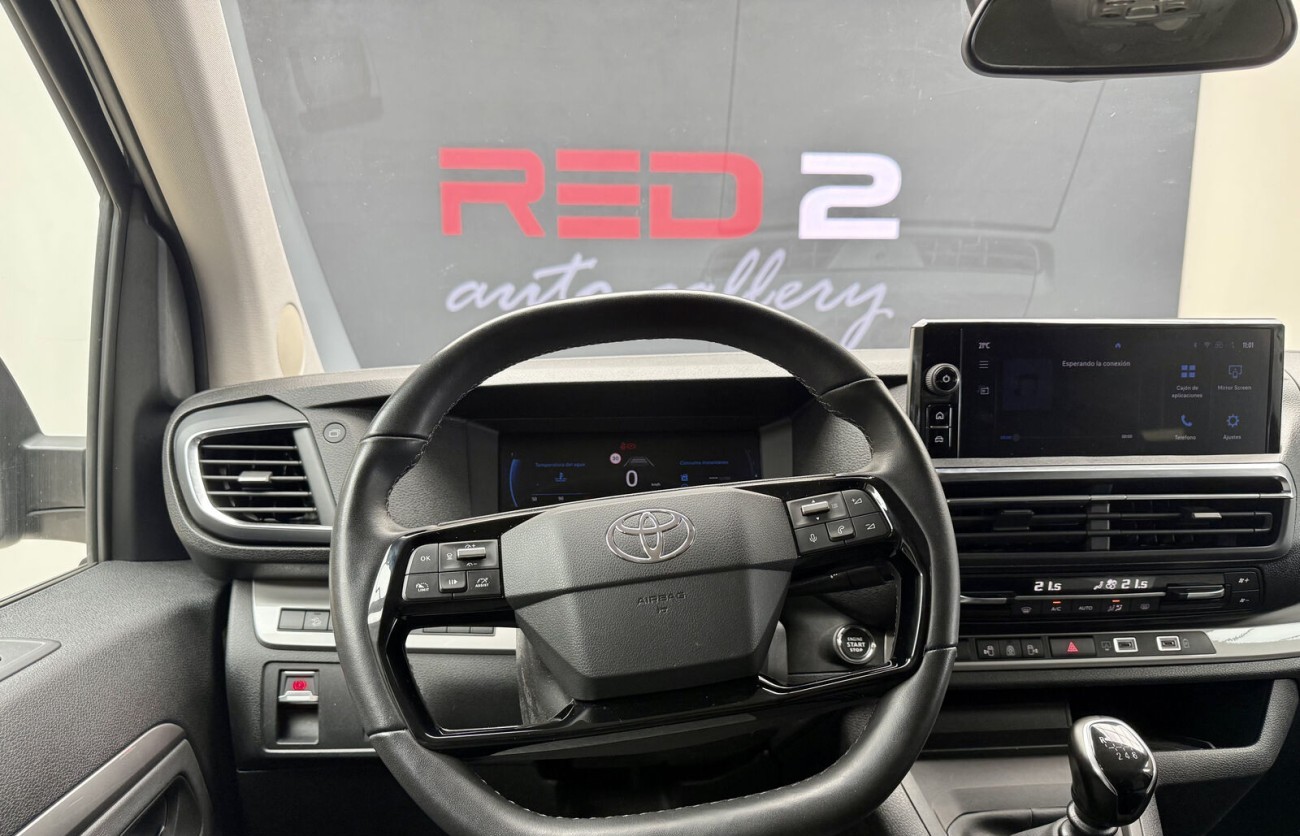 Toyota Proace Verso MY25 L1 2PL Family Advance 2.0D 145CV 6MT matriculada en diciembre de 2024, en estado prácticamente nuevo. Vehículo con garantía oficial de Toyota y sin haber realizado aún el primer mantenimiento. Motor diésel 2.0 con caja manual. Puertas laterales correderas en ambos lados. Cámara trasera y cierre centralizado con mando. Interior en tela y climatización trasera independiente desde el techo. En RED2 ofrecemos opciones de financiación y posibilidad de aceptar vehículo como parte de pago.