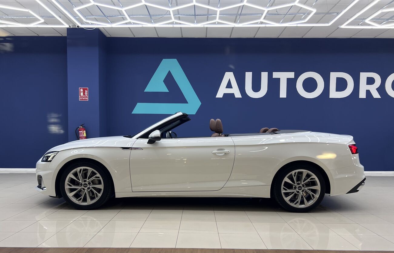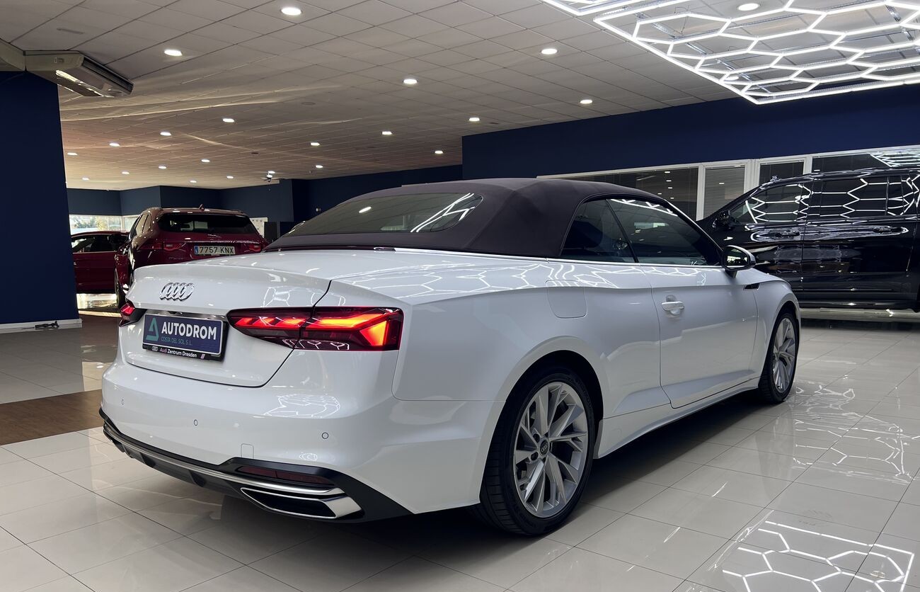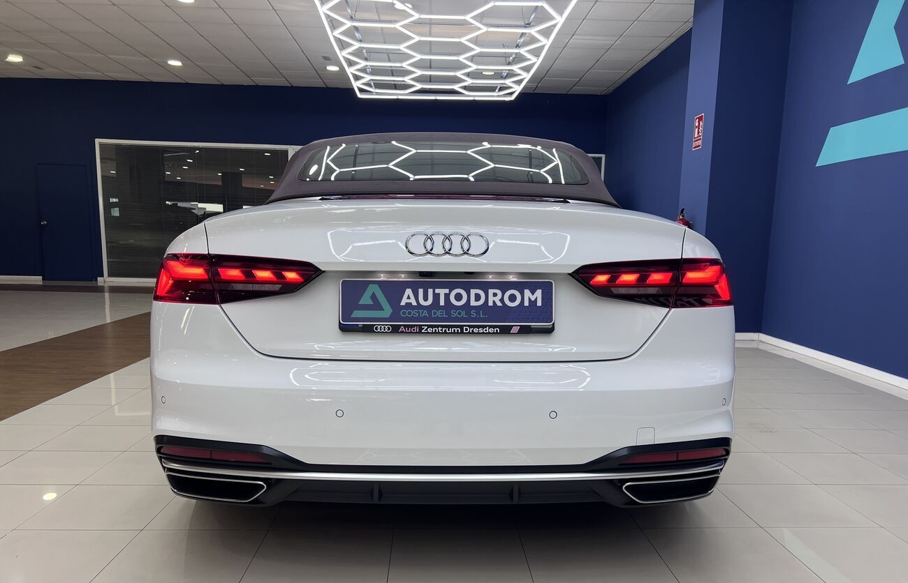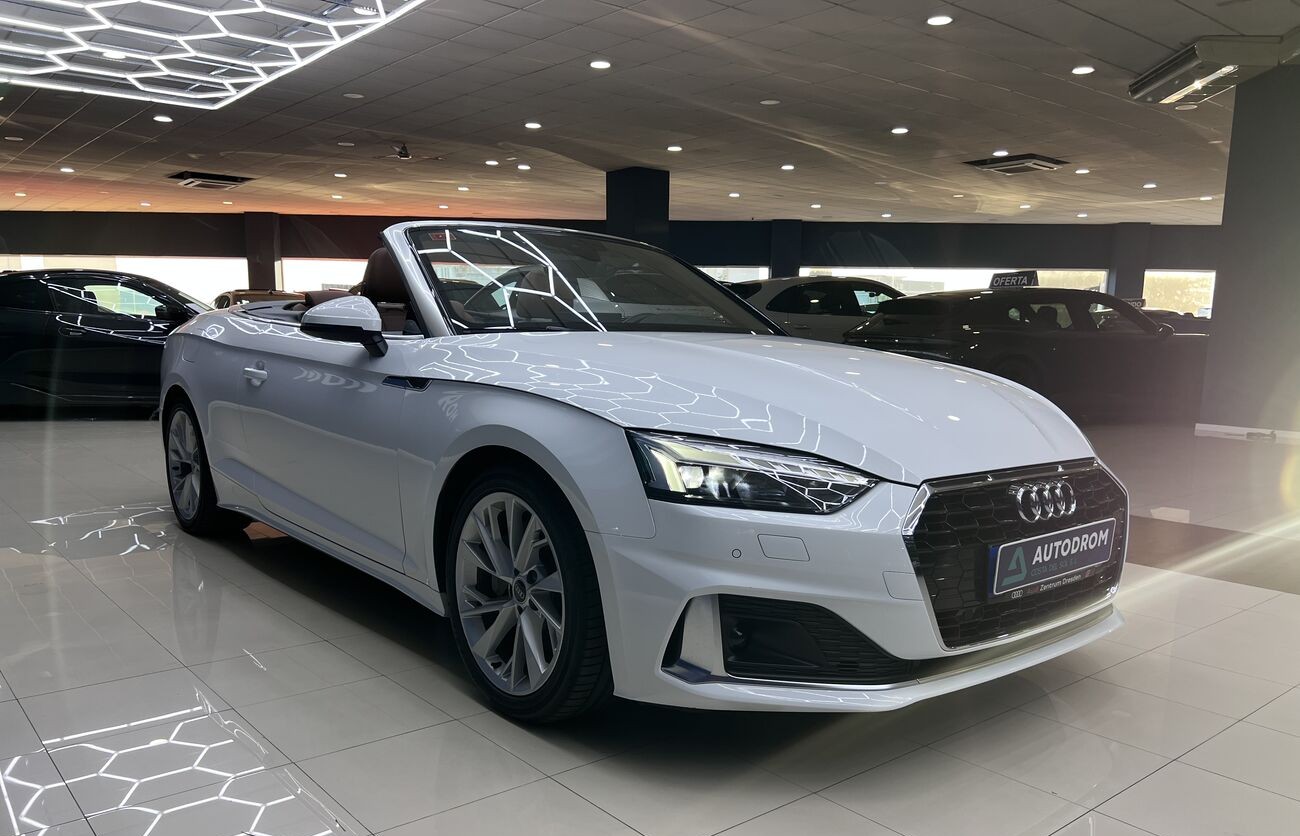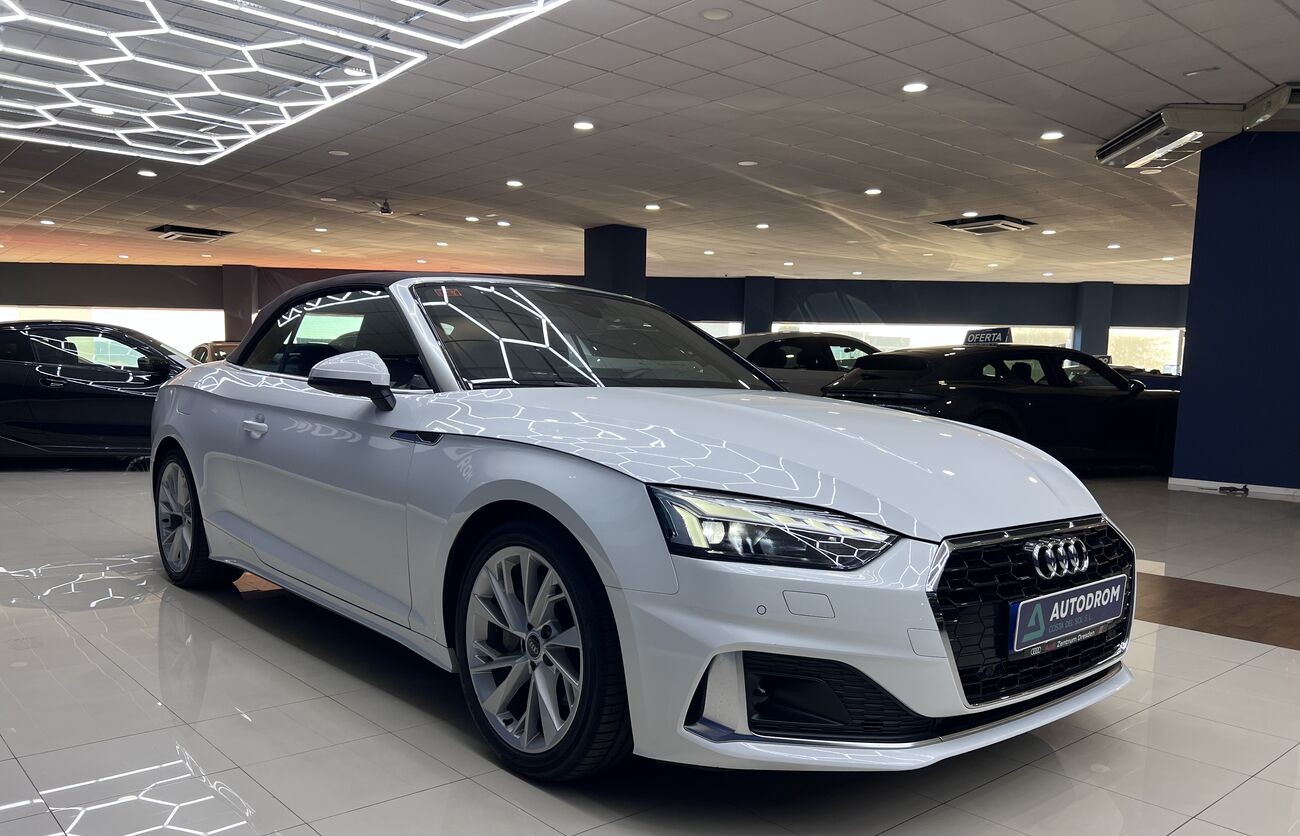 Audi A5 Cabrio 2.0 TDI S tronic — un elegante descapotable de cuatro plazas que combina un motor turbodiésel eficiente, un interior avanzado de Audi, un cuadro de instrumentos digital y una calidad de acabado superior. Ideal para el clima del sur y los viajes por la costa.