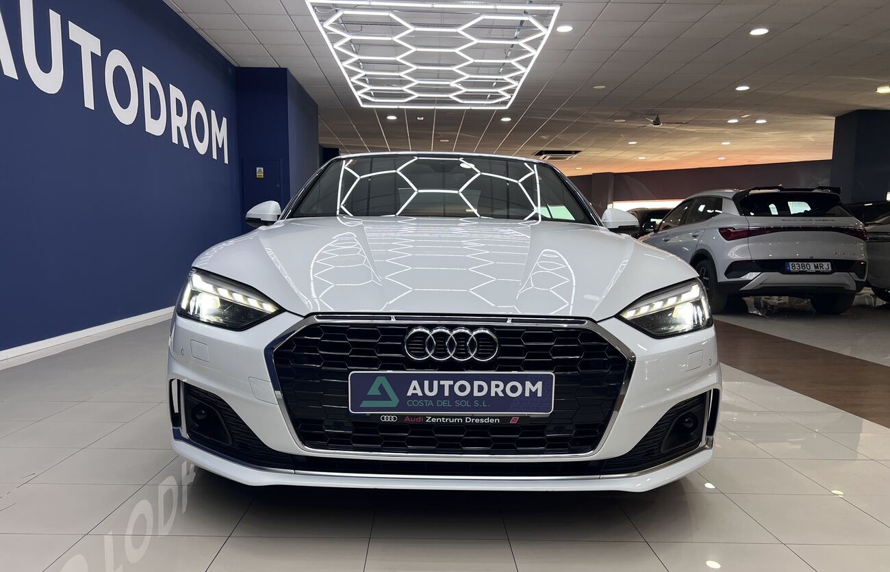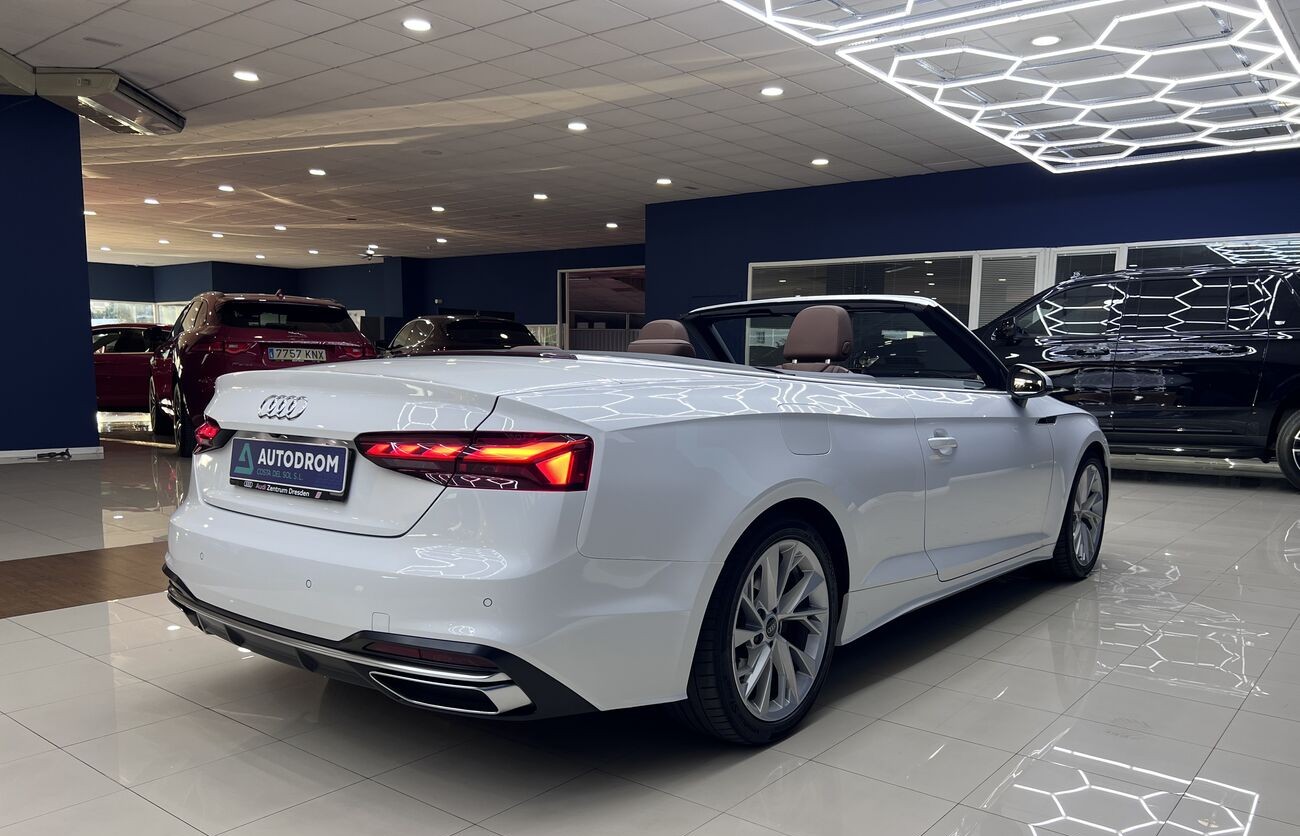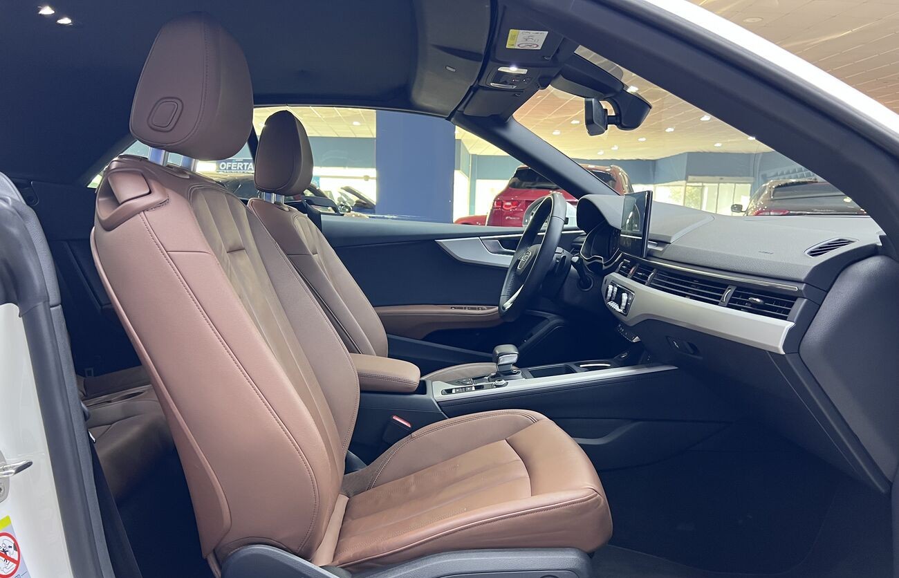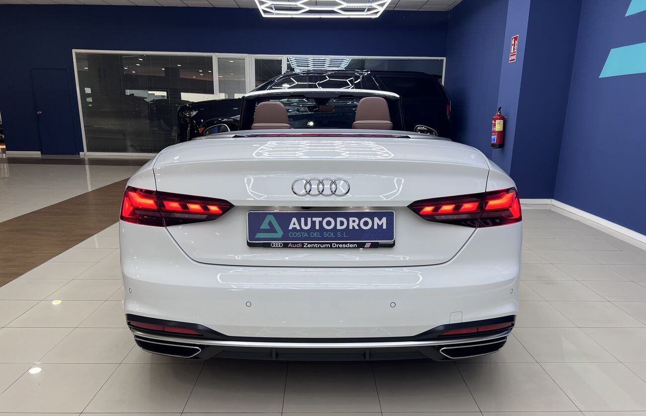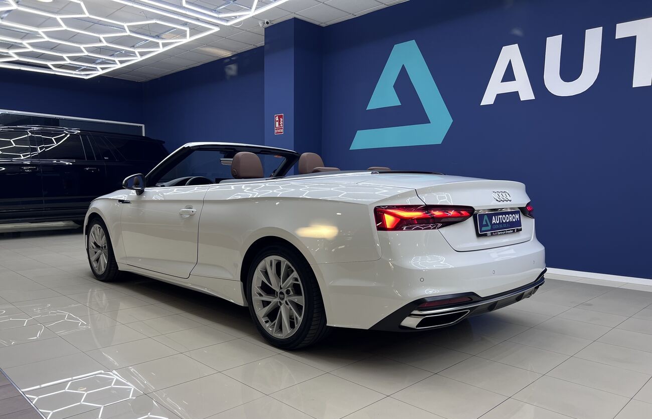 Audi A5 Cabrio 2.0 TDI S tronic — un elegante descapotable de cuatro plazas que combina un motor turbodiésel eficiente, un interior avanzado de Audi, un cuadro de instrumentos digital y una calidad de acabado superior. Ideal para el clima del sur y los viajes por la costa.