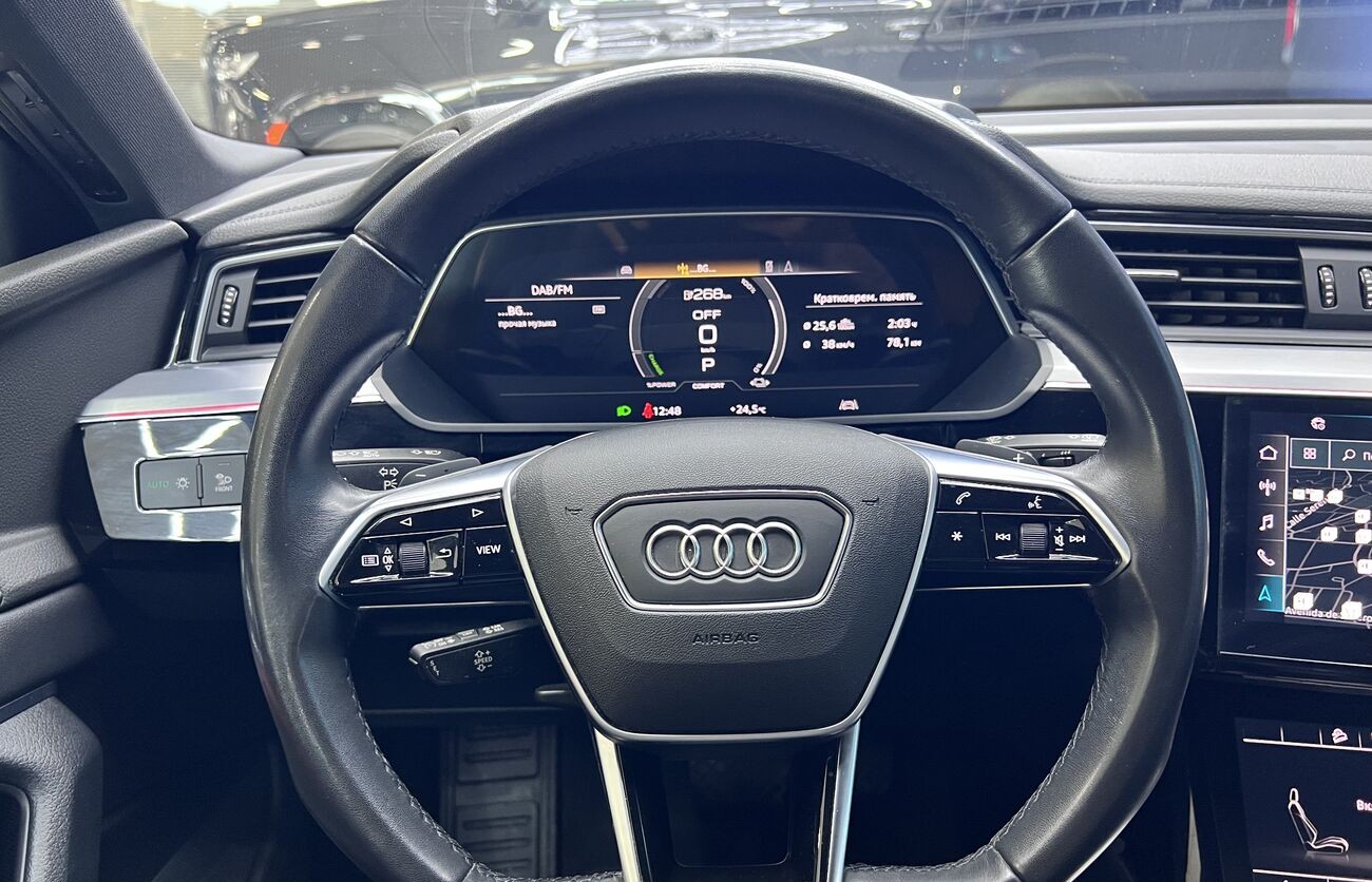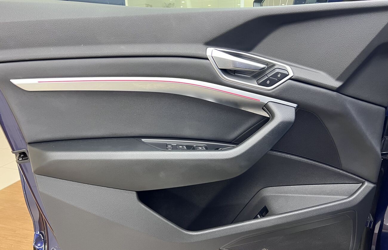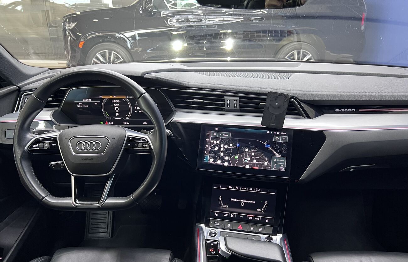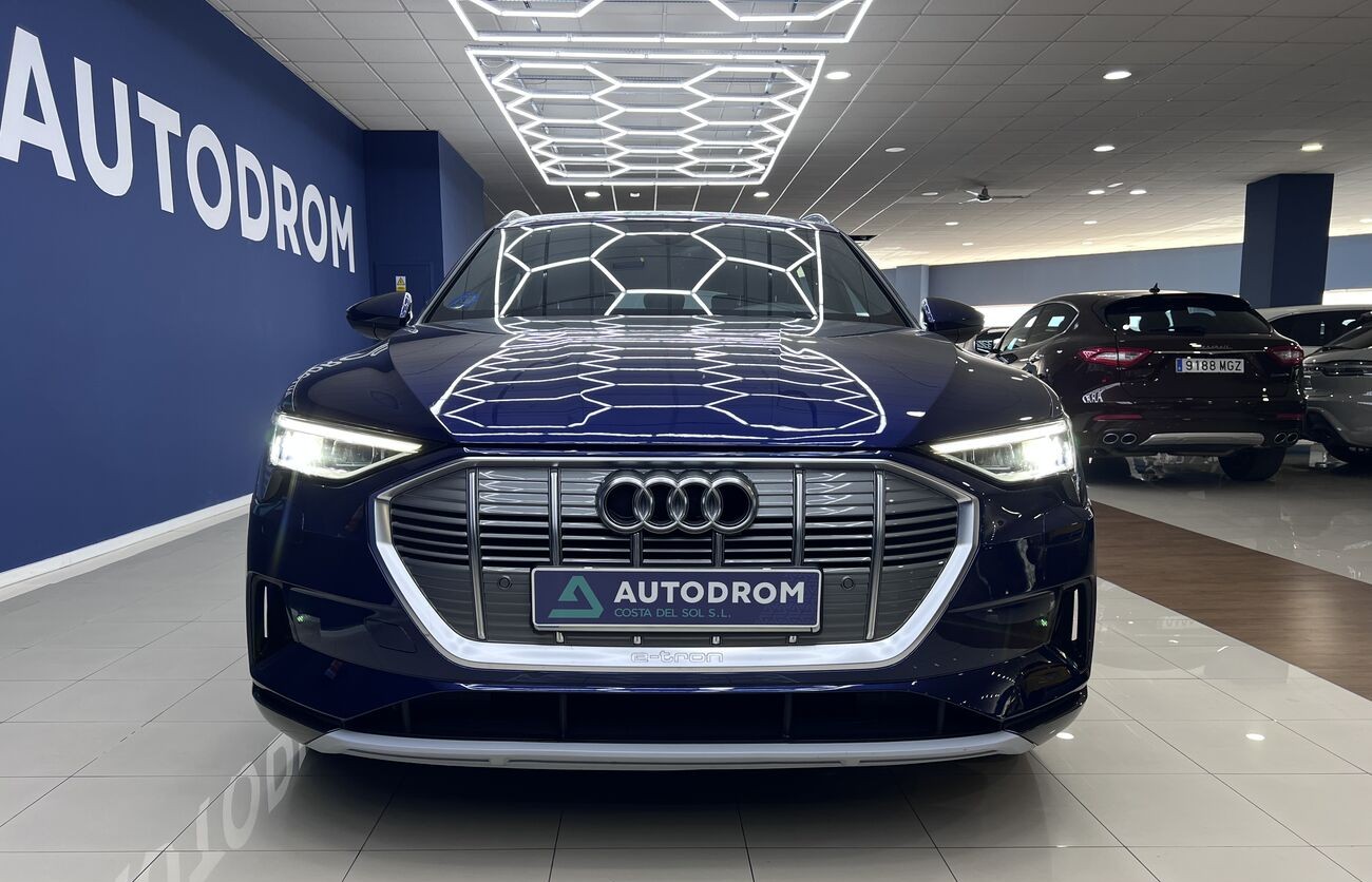 Audi e-tron — un crossover eléctrico premium con tracción total, interior de cuero, suspensión neumática y asistentes modernos. Silencioso, cómodo, elegante y tecnológico.