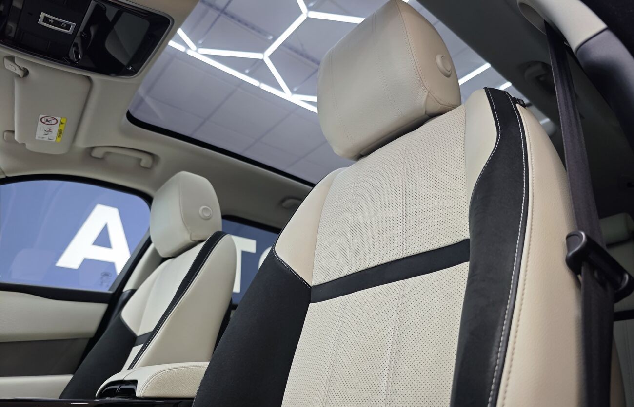 Materiales de interior premium: cuero Windsor, alcántara, inserciones de madera o metal.