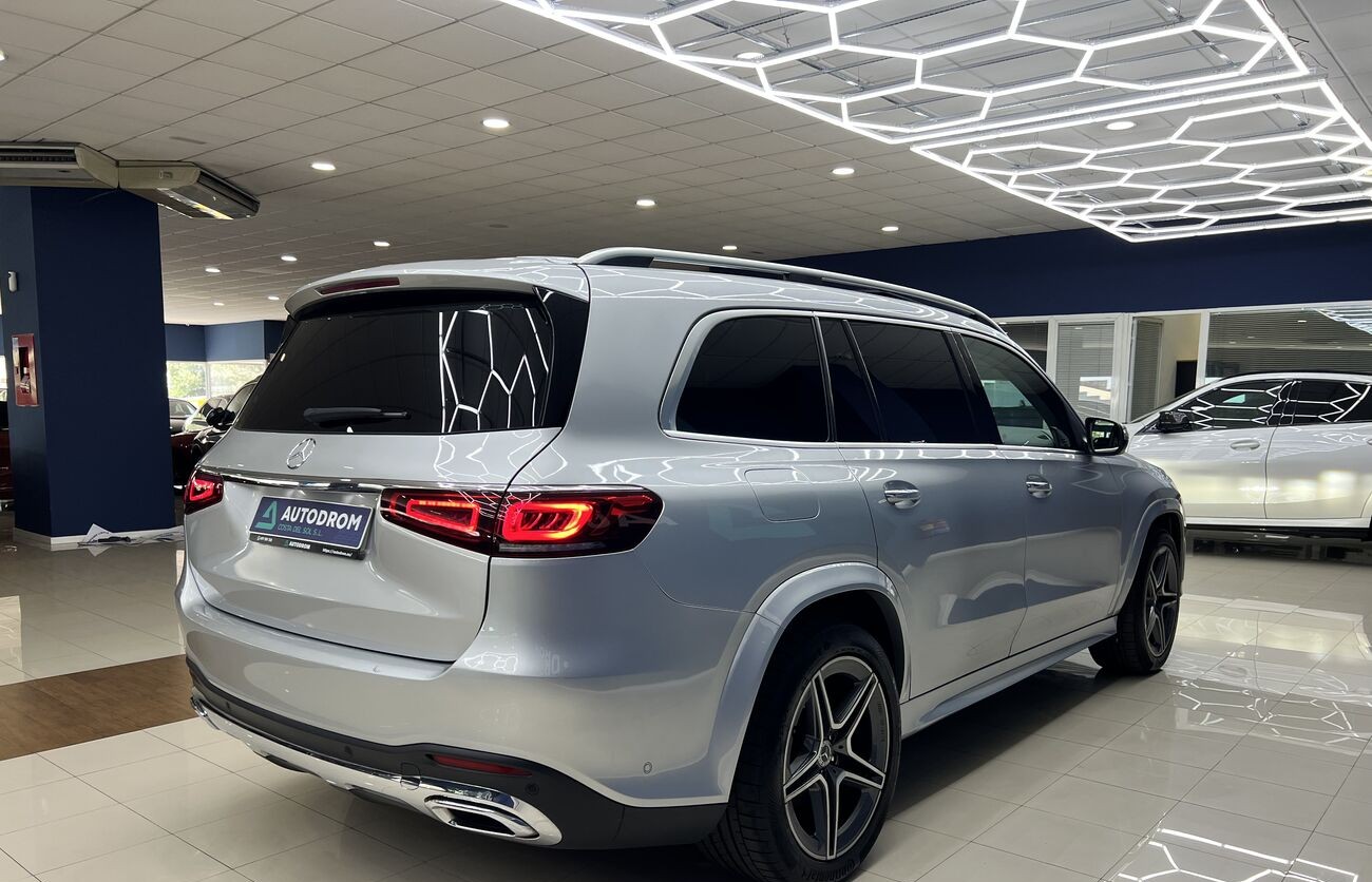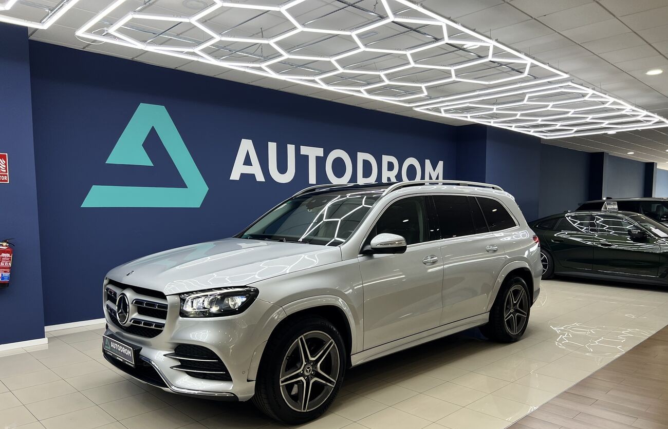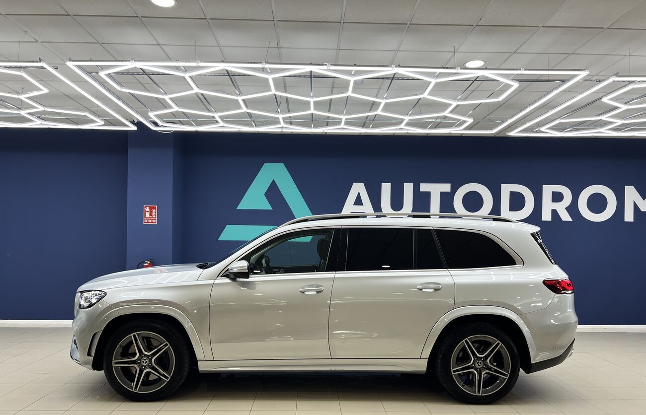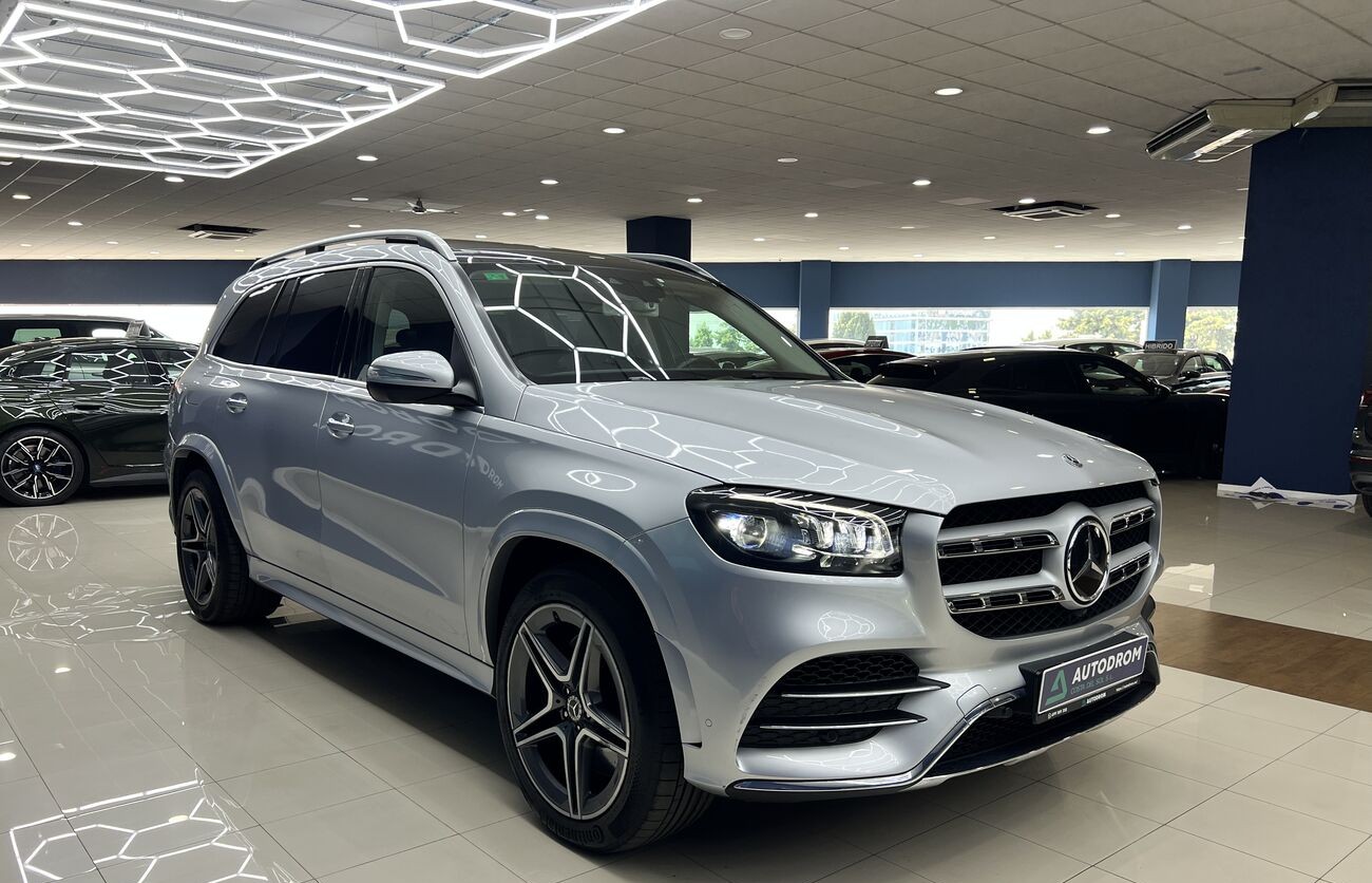 Mercedes-Benz GLS 400d 4MATIC 2019 con paquete AMG Line es un SUV de lujo de 7 plazas con un potente motor de 330 CV, tracción total y diseño deportivo. En la versión AMG Line, el vehículo cuenta con un kit de carrocería agresivo, suspensión neumática AIRMATIC y un interior premium con sistema multimedia MBUX.