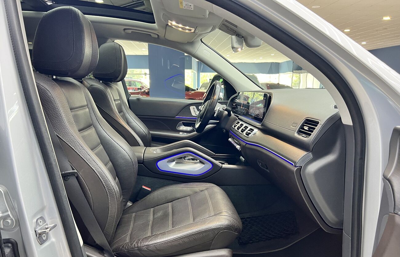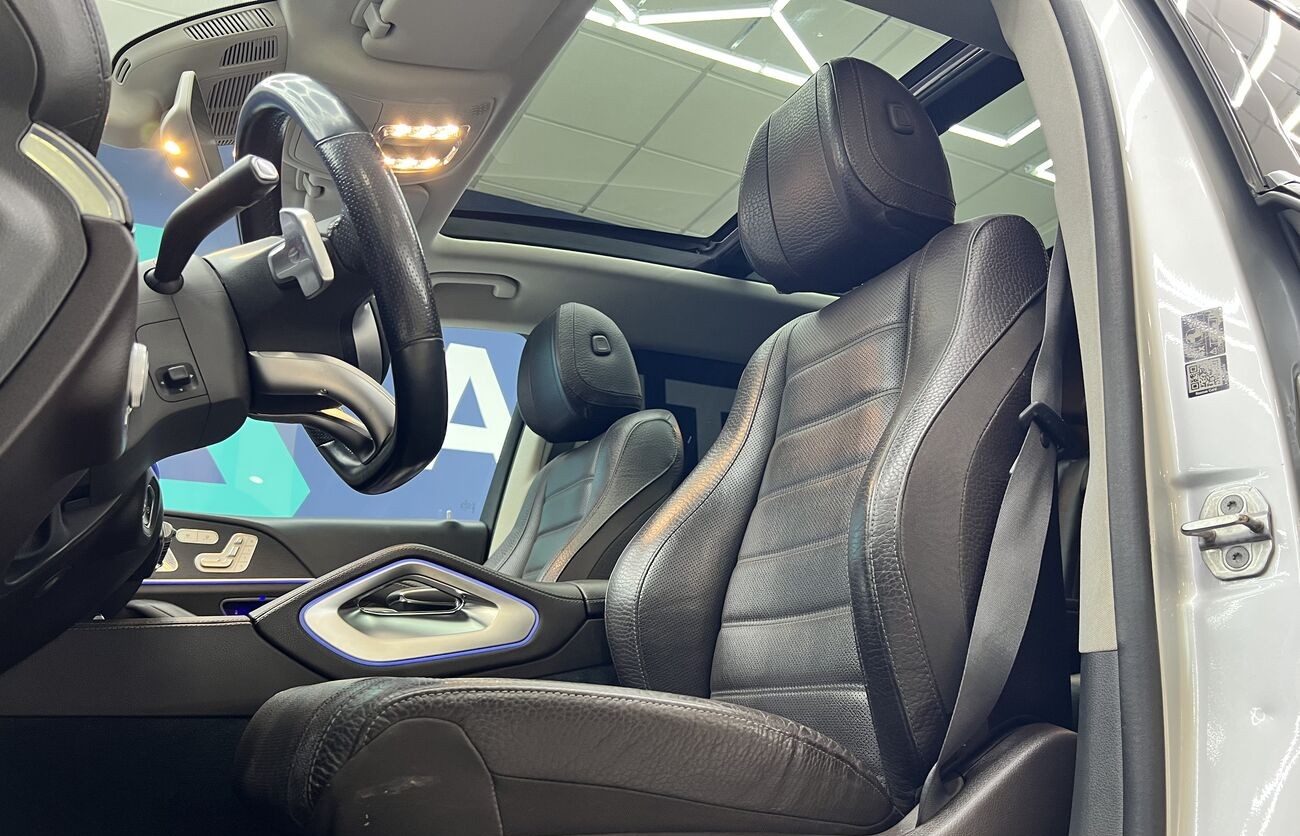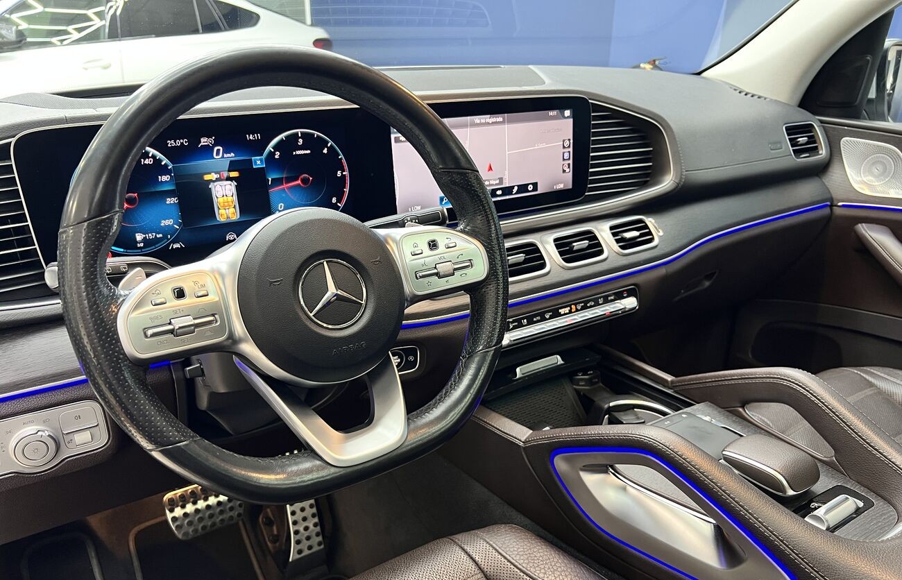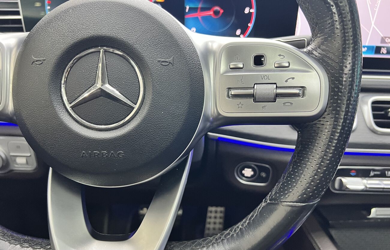 Mercedes-Benz GLS 400d 4MATIC 2019 con paquete AMG Line es un SUV de lujo de 7 plazas con un potente motor de 330 CV, tracción total y diseño deportivo. En la versión AMG Line, el vehículo cuenta con un kit de carrocería agresivo, suspensión neumática AIRMATIC y un interior premium con sistema multimedia MBUX.