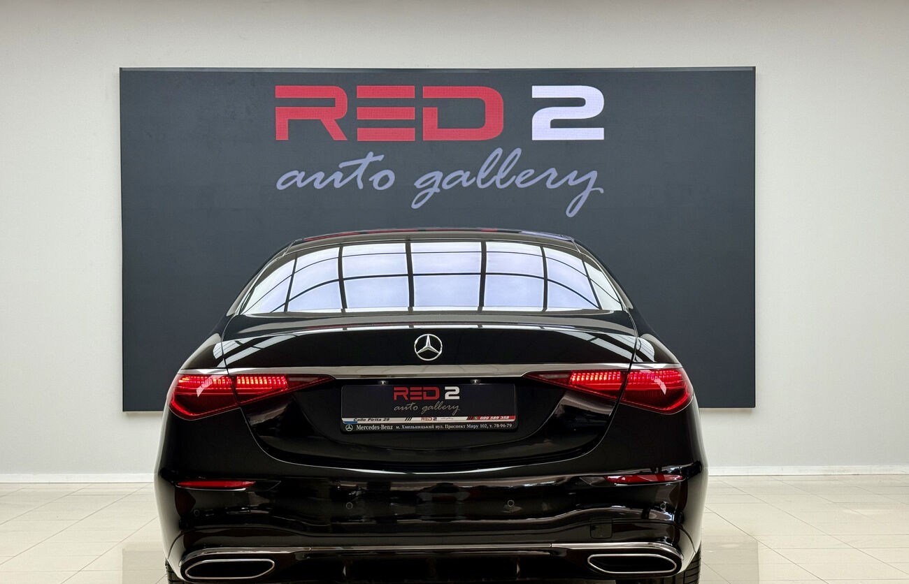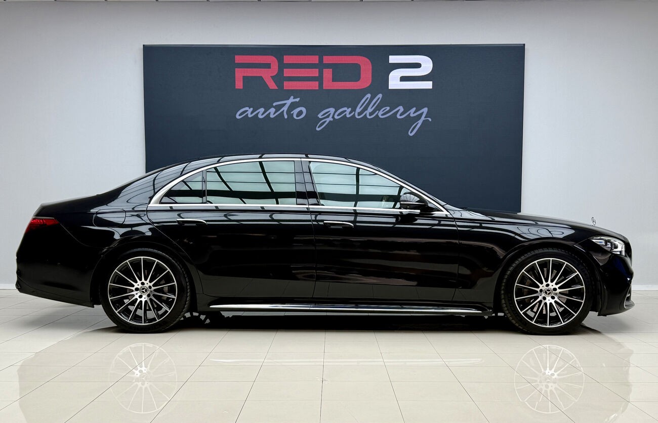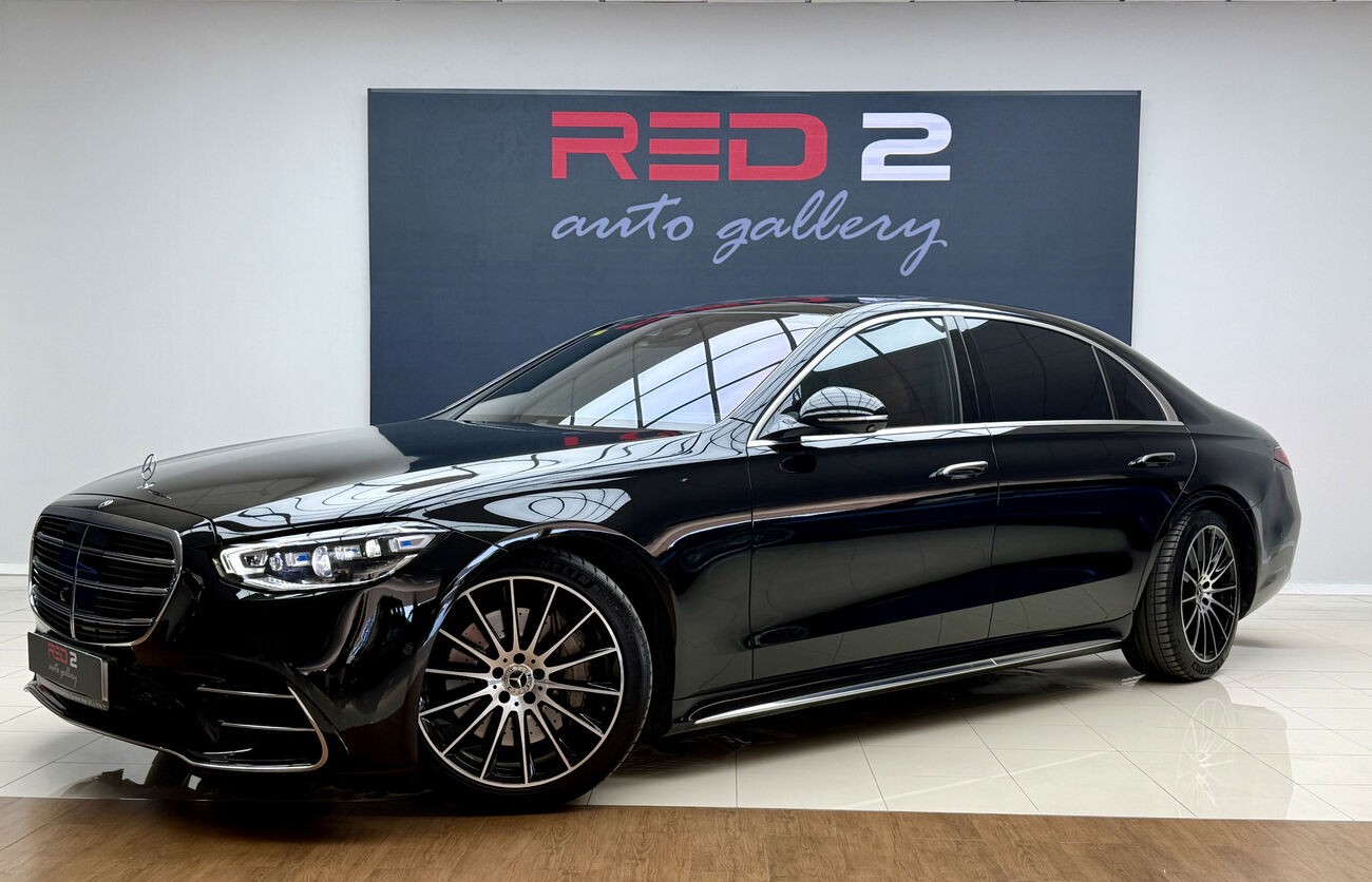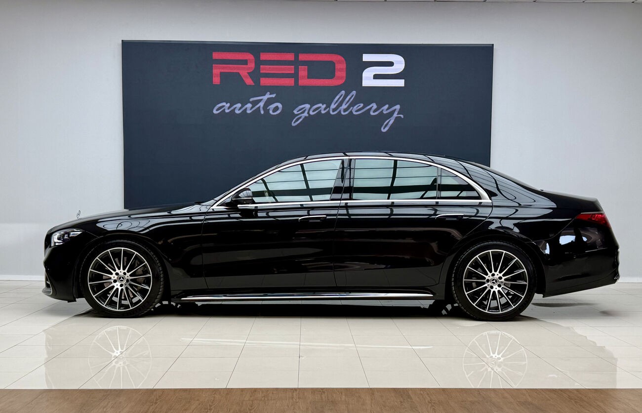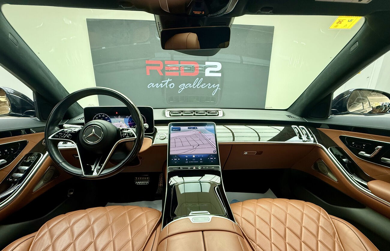 Mercedes-Benz S 400d 4MATIC Larga-vehículo de lujo, berlina larga con tracción total 4MATIC, motor diésel OM656 2,9 L. Combina confort, seguridad y tecnología avanzada, ideal para viajes largos con interior exclusivo de color naranja máximo.