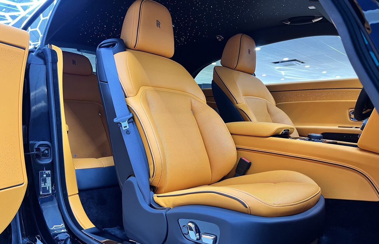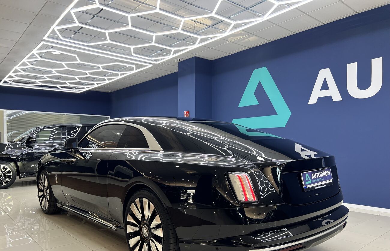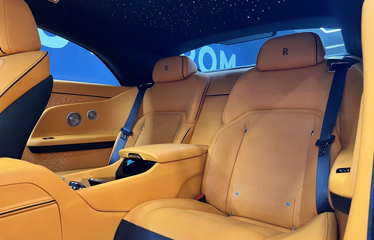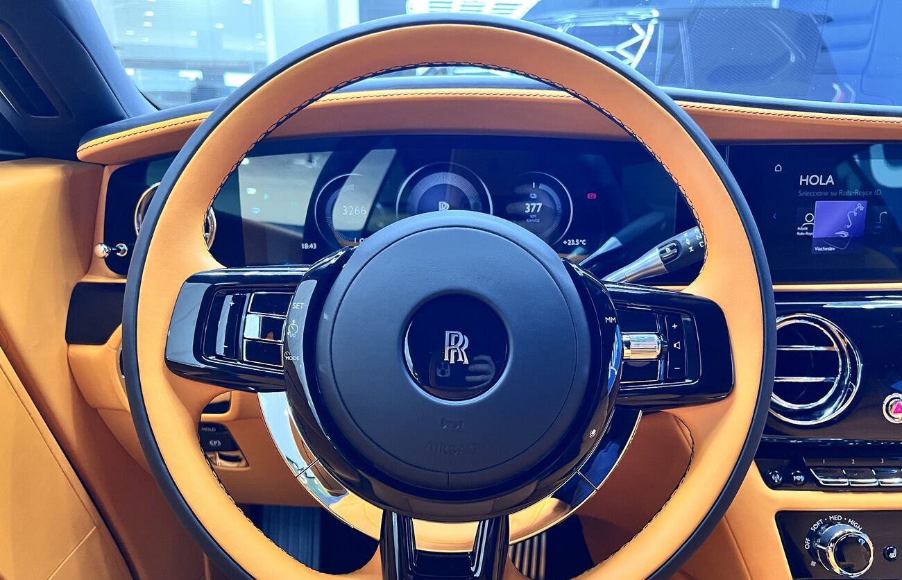 El interior conserva los elementos distintivos de Rolls-Royce: un techo estrellado, materiales de acabado de alta calidad y sistemas multimedia de última generación.